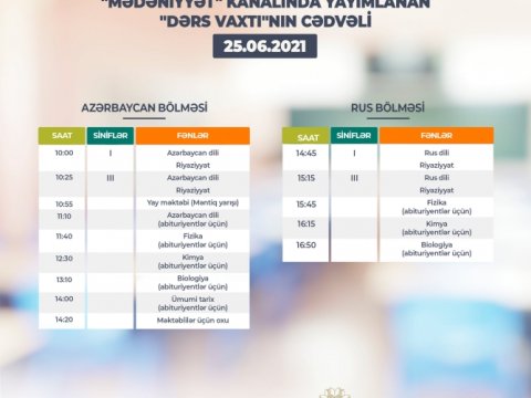 "Dərs vaxtı"nın iyunun 25-nə olan cədvəli