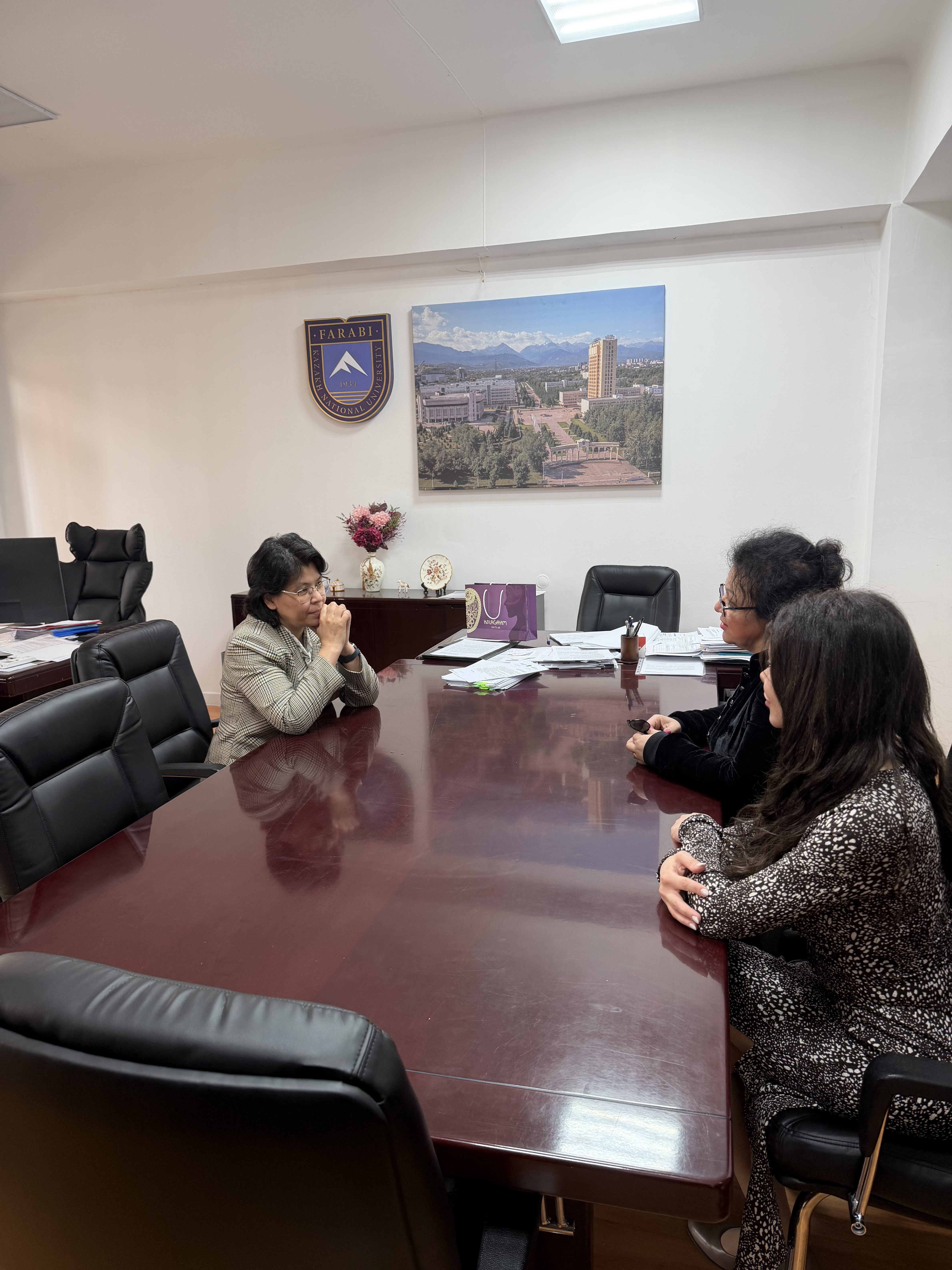 Eyni zamanda, ADNSU alimlərinin Əl-Fərabi adına Qazax Milli Universitetinin elmi jurnallarında məqalələrinin dərc olunması və bu istiqamətdə əməkdaşlığın davam etdirilməsi məsələləri müzakirə edilib.